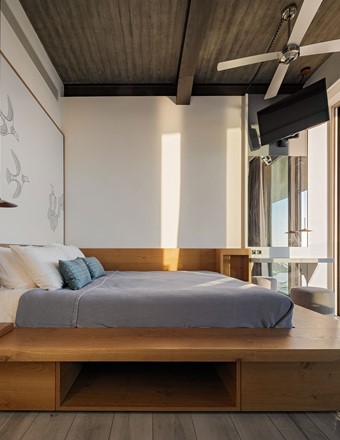 Each has a king size bed dressed with natural linens, an en suite bathroom with shower and naturally sourced products, cotton towels, robes and slippers. Each morning the sun awakes you naturally and at sunset, the sound of the sea accompanies you into the deepest of sleeps!