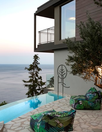 The garden at the bedrooms level features a further relaxation area with a small infinity pool alongside a dining little space positioned around an olive tree inspired by the concept of the “platia”; a village square typical of life in Greece depicting a sense of community and gathering whilst enjoying a Greek coffee or a sip of Raki whilst relishing the taste of home-grown olives and local delicacies.