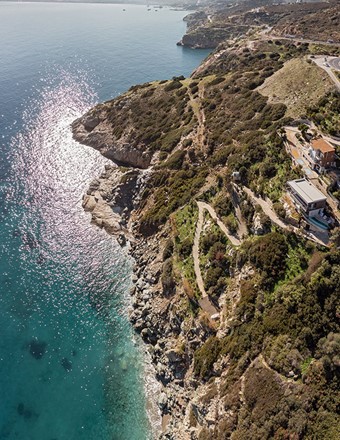 All this in a private and secluded environment over-hanging a cliff of the Cretan Sea yet within easy reach (15km/30mins) of the international airport and capital city of Heraklion. The location combines the ideal contrast of the tranquility that one seeks in order to relax, reflect, study or practice, but still offering city life, historical sites, public beaches and mountain villages.