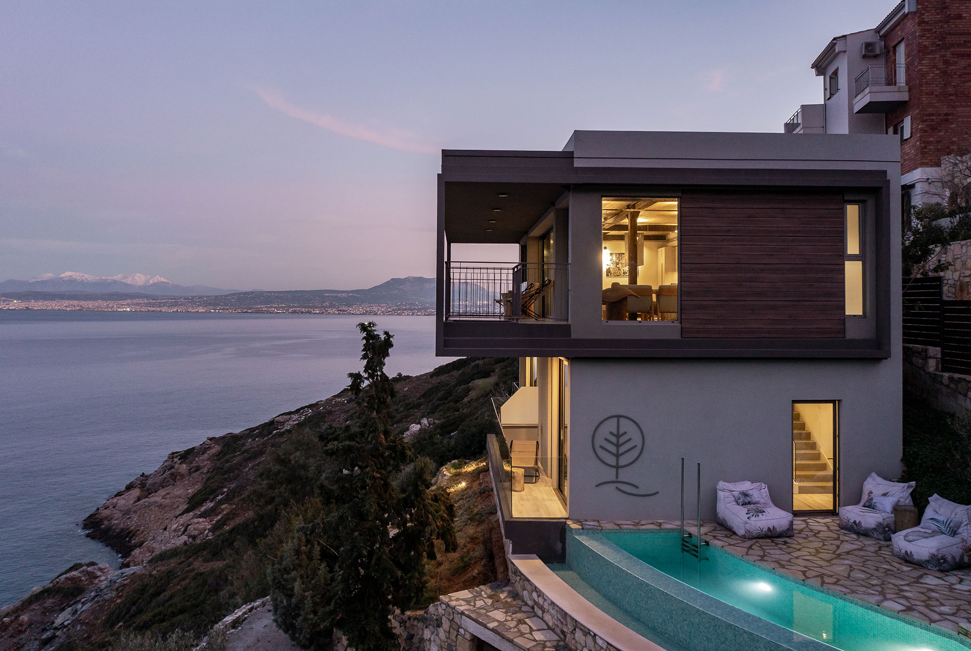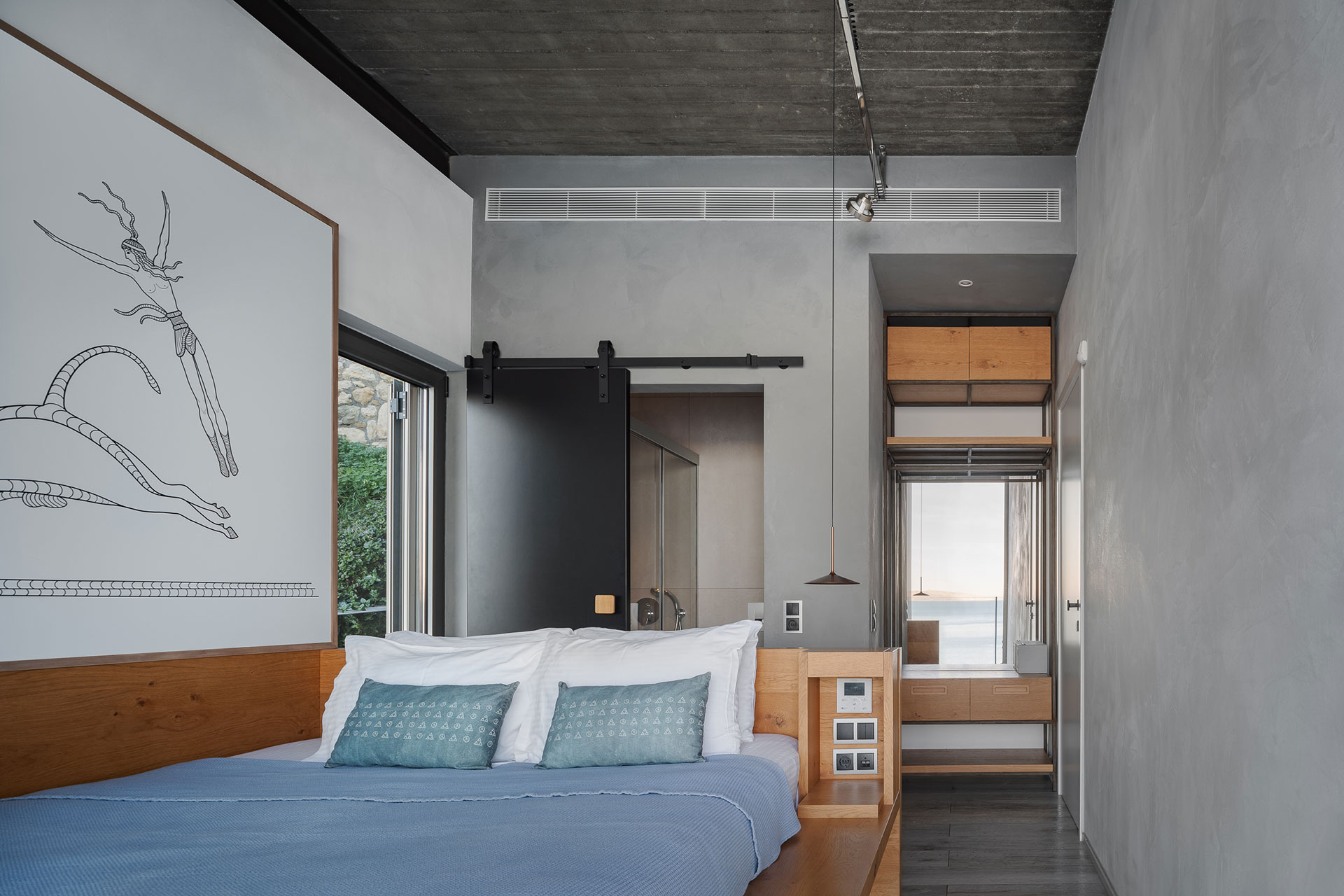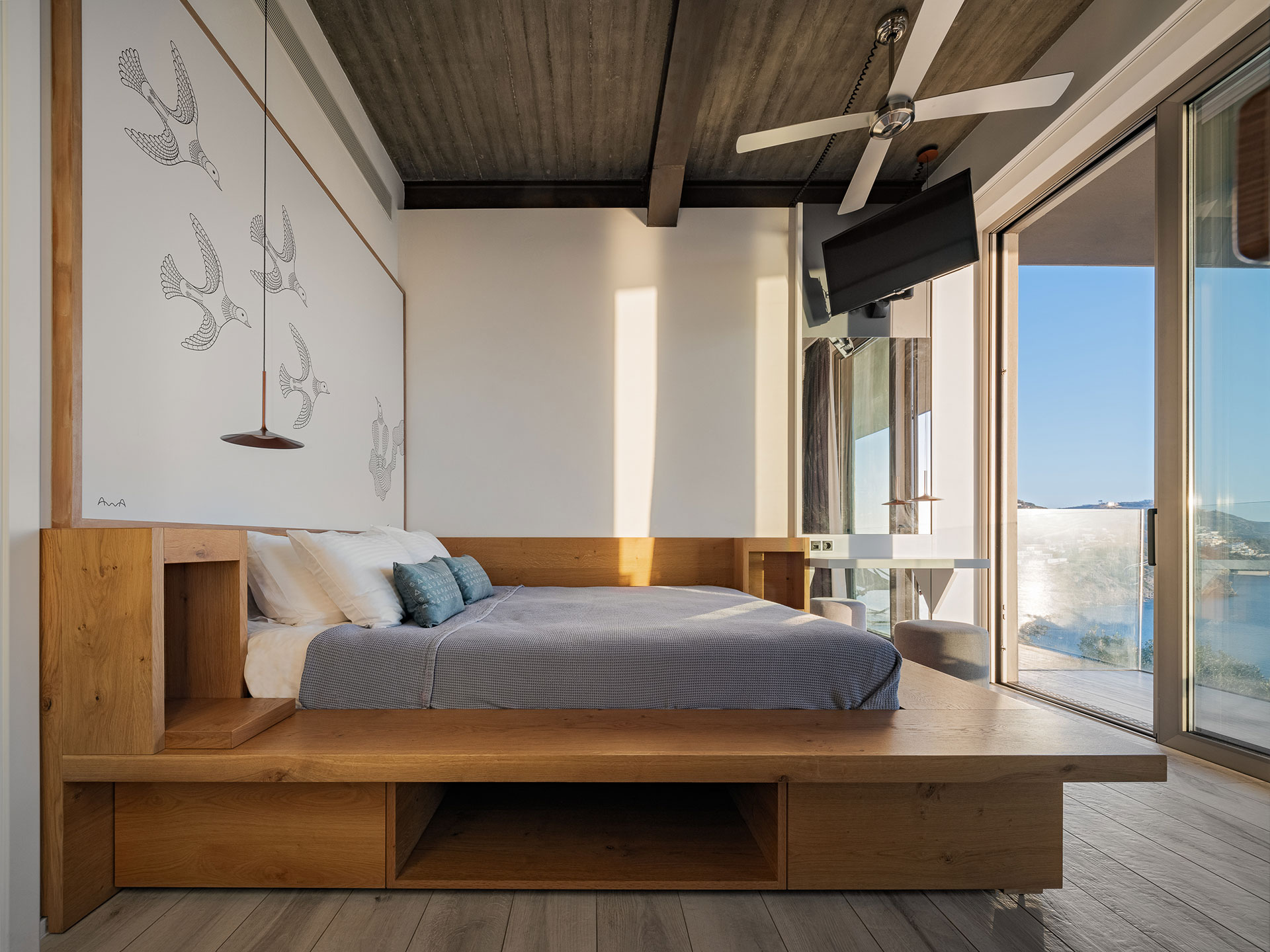 The garden at the bedrooms level features a further relaxation area with a small infinity pool alongside a dining little space positioned around an olive tree inspired by the concept of the “platia”; a village square typical of life in Greece depicting a sense of community and gathering whilst enjoying a Greek coffee or a sip of Raki whilst relishing the taste of home-grown olives and local delicacies.