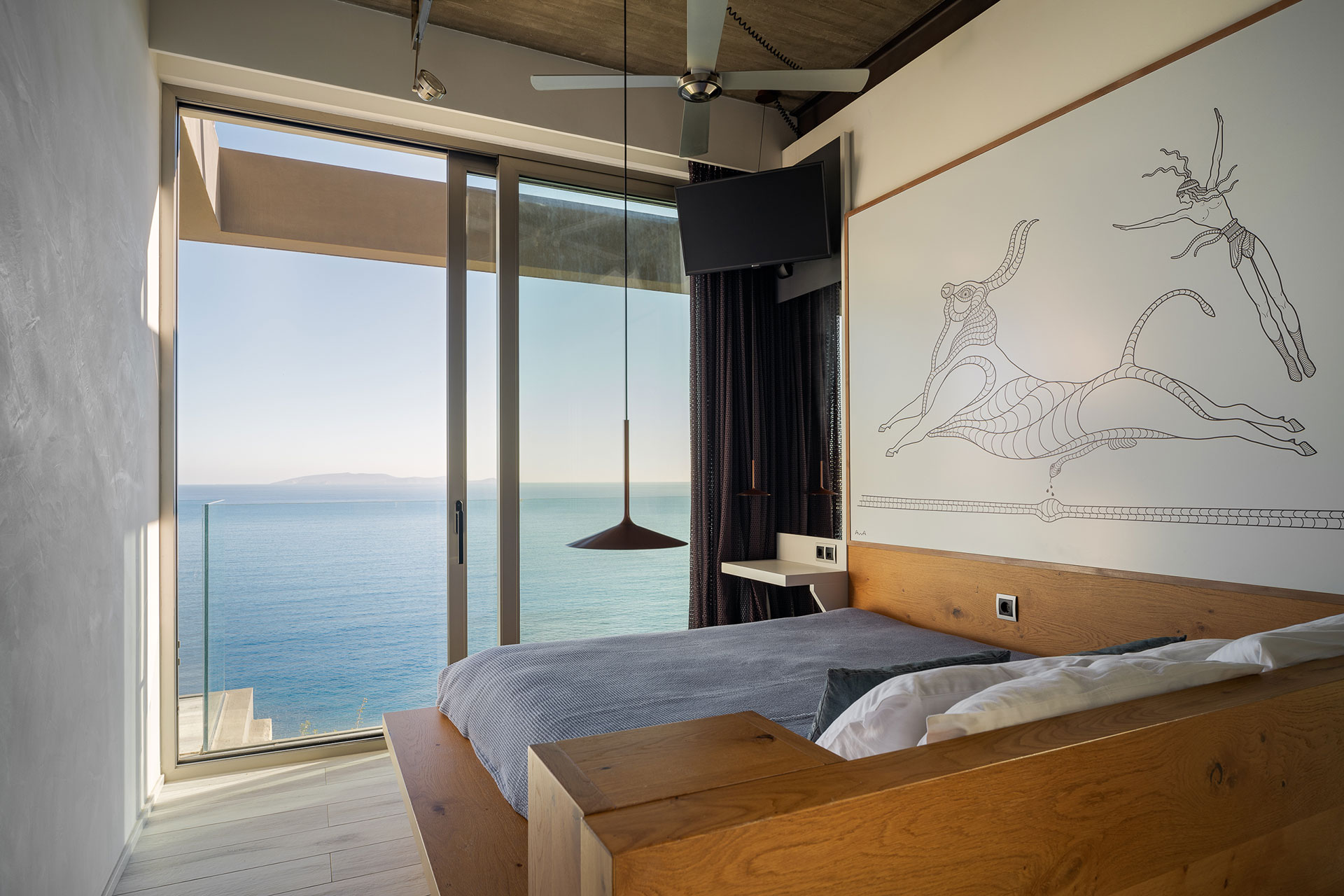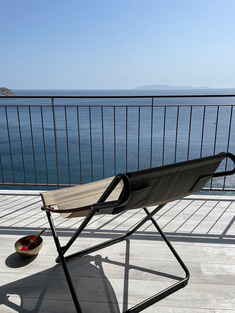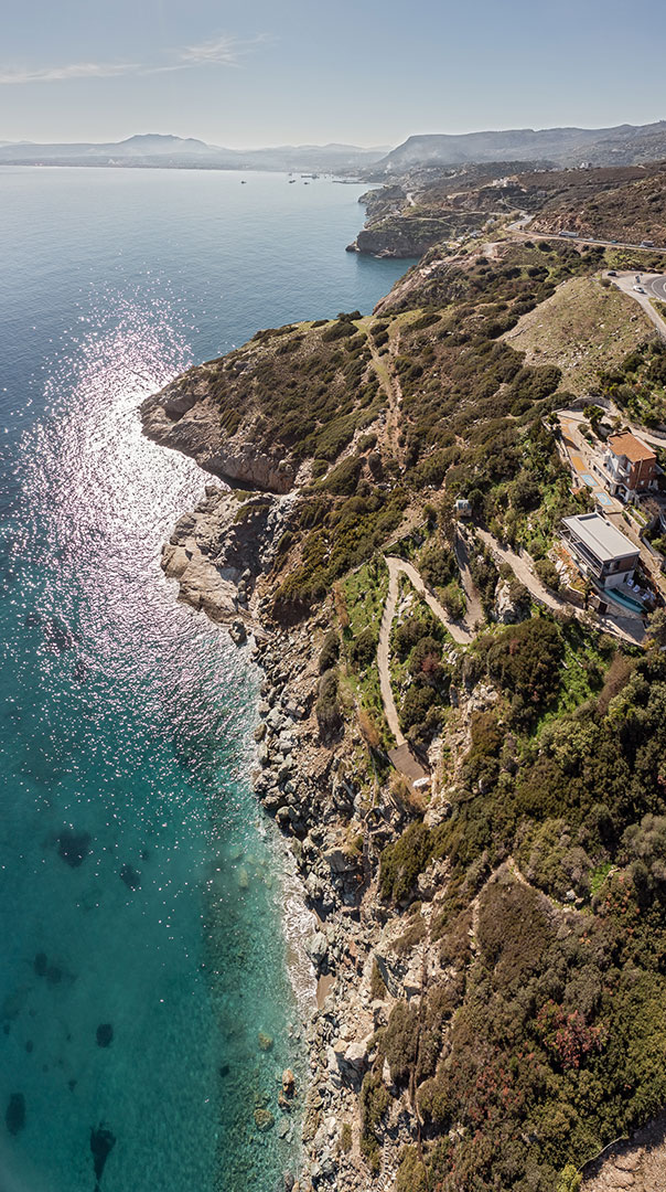All this in a private and secluded environment over-hanging a cliff of the Cretan Sea yet within easy reach (15km/30mins) of the international airport and capital city of Heraklion. The location combines the ideal contrast of the tranquility that one seeks in order to relax, reflect, study or practice, but still offering city life, historical sites, public beaches and mountain villages.